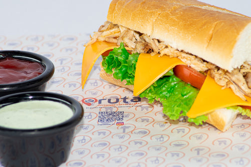 Pan Baguette, Lomo y Pollo a la plancha, Queso, Tomate, Lechuga, Salsa de la casa.